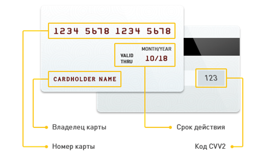 - Имя держателя карты (латинскими буквами, точно также как указано на карте)